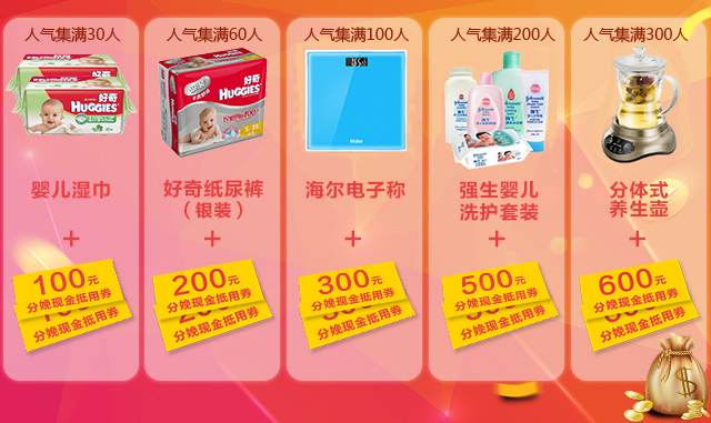 人气指数100:海尔电子秤+300元分娩现金抵用券一张