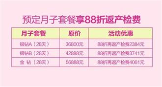 预交分娩、月子套餐全额返还产检费:活动现场预定分娩或月子,就可获得不同额度的产检费返还,最低返还200元,最高返还8800元
